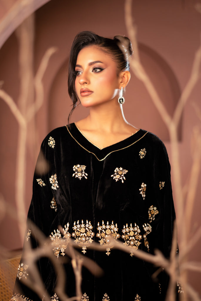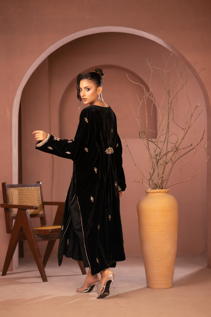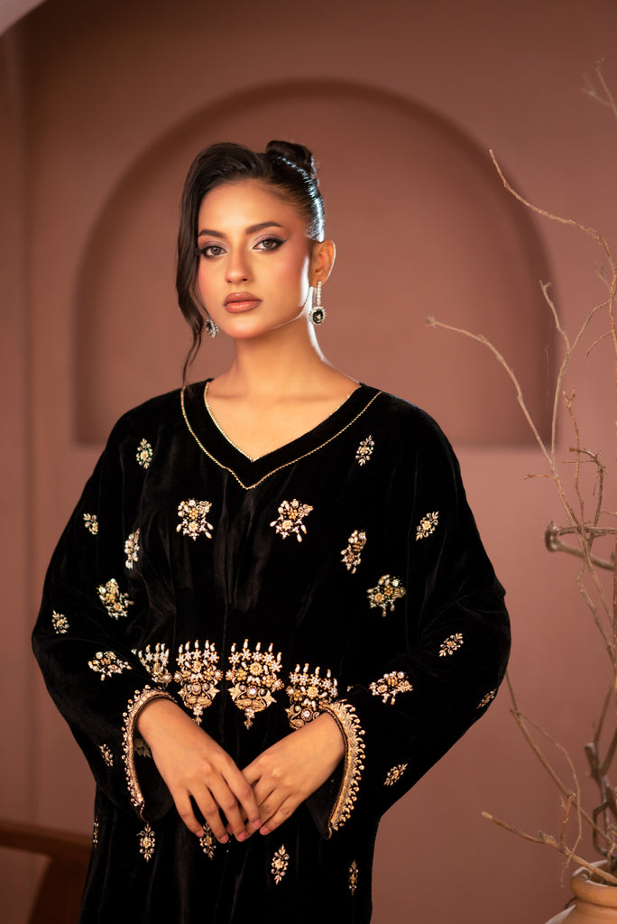 Fabric:    Embroidered Hand and Machine work Velvet Shirt  & cotton pent.